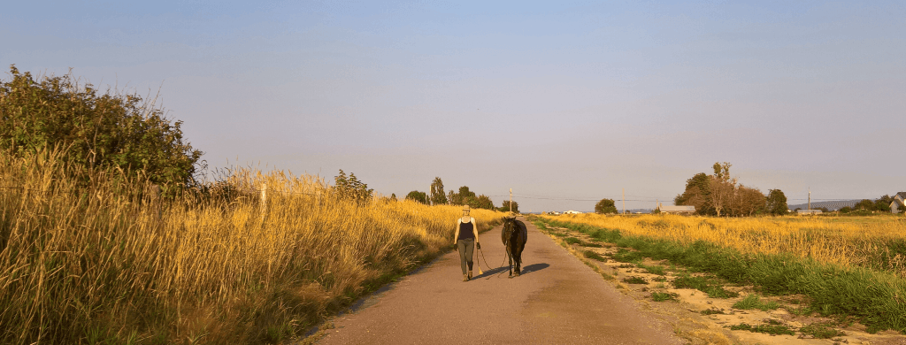 When we go outside the property, I of course use the lead-rope for safety. But I hold it loosely. I walk and trust that she’ll follow, and she does. When something catches her attention, I listen – not blindly, but genuinely. Sometimes her read of the environment is worth considering.